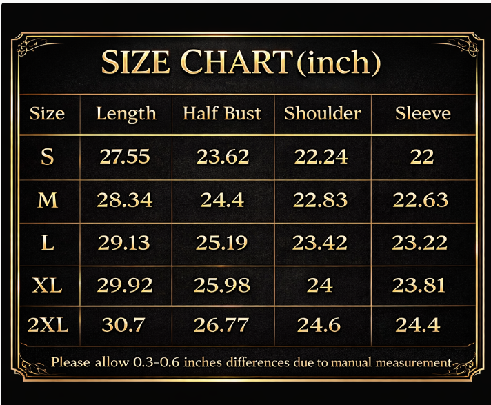 • Shrinkage: Our garments are pre-shrunk, but follow care instructions to minimize any further shrinkage.